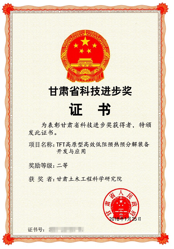 2018年1月17日,甘肅省政府印發(fā)《甘肅省人民政府關于2017年度甘肅省科學技術獎勵的決定》。我院聯(lián)合張掖市山丹鐵騎水泥有限責任公司申報的“TFT高原型高效低阻預熱預分解系統(tǒng)裝備與應用”項目榮獲2017年度甘肅省科技進步二等獎。
