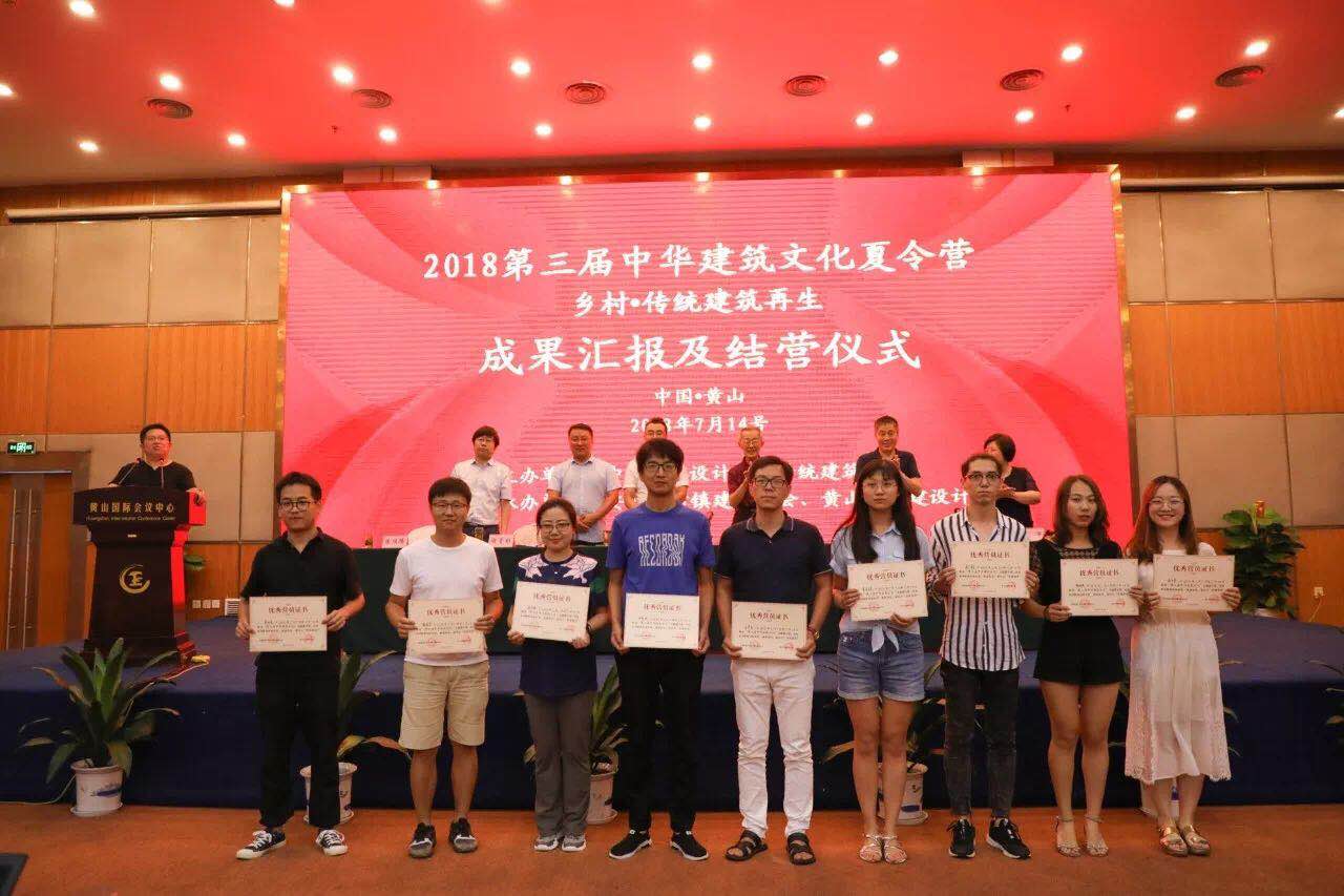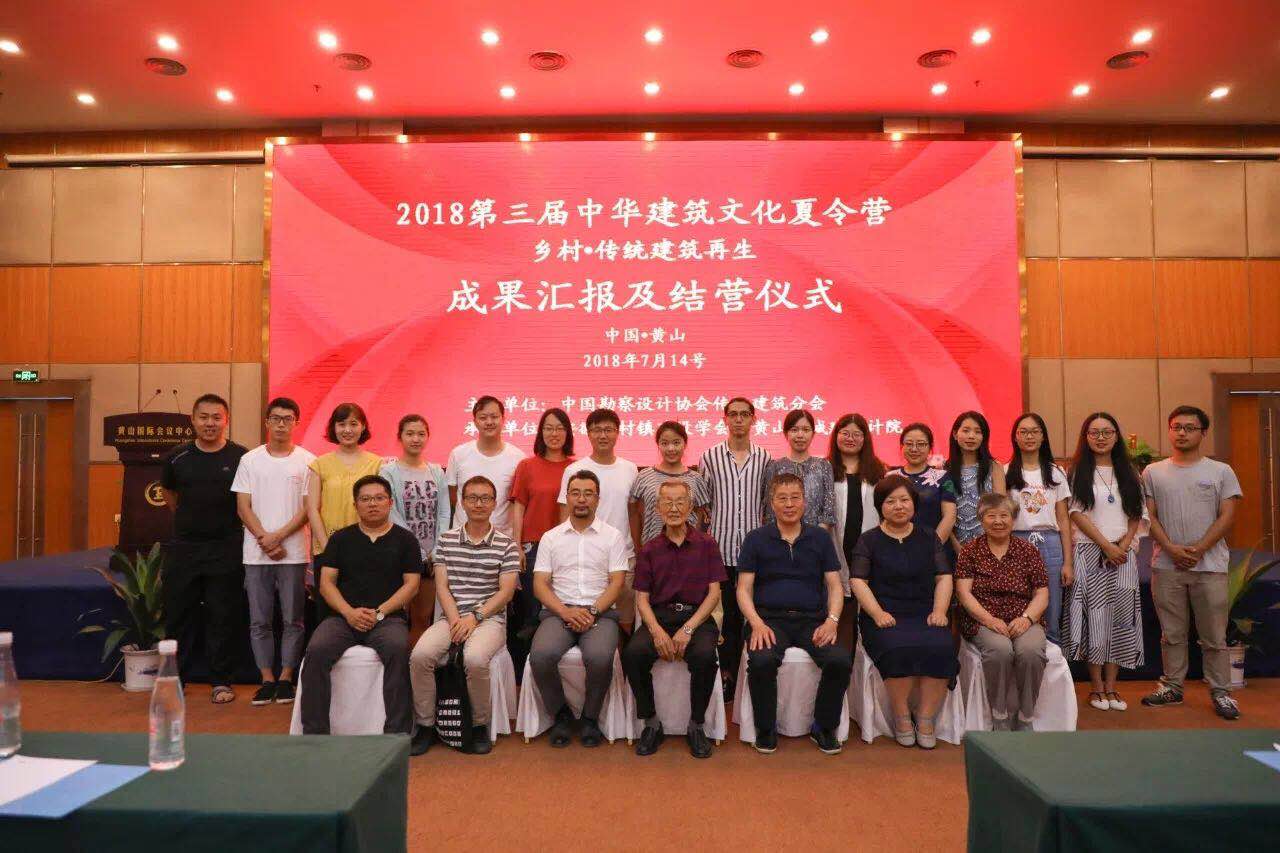 2018年7月14日,由中國勘察設計協(xié)會指導、中國勘察設計協(xié)會傳統(tǒng)建筑分會主辦、安徽省村鎮(zhèn)建設學會和黃山市城建設計院共同承辦的以“鄉(xiāng)村·傳統(tǒng)建筑再生”為主題的第三屆中華建筑文化夏令營結營儀式在黃山國際大酒店舉行。清華大學建筑學院教授單德啟、中勘協(xié)傳統(tǒng)建筑分會副會長黃滋、中勘協(xié)傳統(tǒng)建筑分會秘書長王新華、中勘協(xié)傳統(tǒng)建筑分會常務理事李早、安徽省村鎮(zhèn)建設學會理事長程堂明、黃山市城建設計院院長陳繼騰等領導以及營員等約90人參加了結營儀式。黃山市城建設計院副院長陸笑旻主持會議。