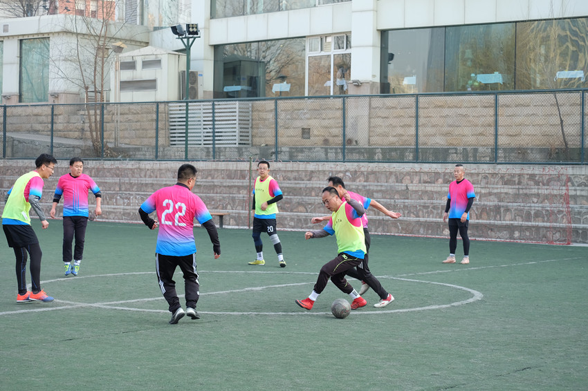本次比賽由職能、設(shè)計聯(lián)隊對陣巖土、檢測聯(lián)隊。雖然天氣嚴寒,但大家在球場上的熱情絲毫不減。隊員們激烈拼搶,步履如飛,運球熟練,傳球精彩,搶斷漂亮,射門精準。比賽波瀾跌宕,賽場精彩紛呈。最終巖土、檢測聯(lián)隊技高一籌以8:7獲得勝利。