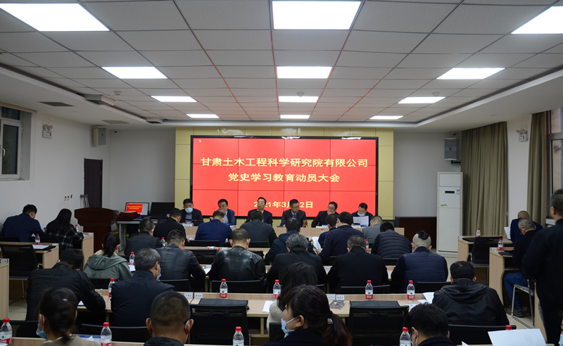 3月12日,公司黨委召開(kāi)黨史學(xué)習(xí)教育動(dòng)員大會(huì),傳達(dá)學(xué)習(xí)習(xí)近平總書(shū)記在黨史學(xué)習(xí)教育動(dòng)員大會(huì)上的重要講話(huà)精神、全省黨史學(xué)習(xí)教育動(dòng)員大會(huì)精神以及省政府國(guó)資委、集團(tuán)股份公司黨史學(xué)習(xí)教育動(dòng)員大會(huì)會(huì)議精神。黨委書(shū)記、董事長(zhǎng)董紅健主持會(huì)議并作動(dòng)員講話(huà),對(duì)公司黨史學(xué)習(xí)教育工作作了安排部署。黨委副書(shū)記、監(jiān)事會(huì)主席、工會(huì)主席張磊宣讀了《中共甘肅土木工程科學(xué)研究院有限公司委員會(huì)黨史學(xué)習(xí)教育實(shí)施方案》。公司黨委委員、紀(jì)委委員、各黨支部支部委員和黨員中層干部等參加會(huì)議。