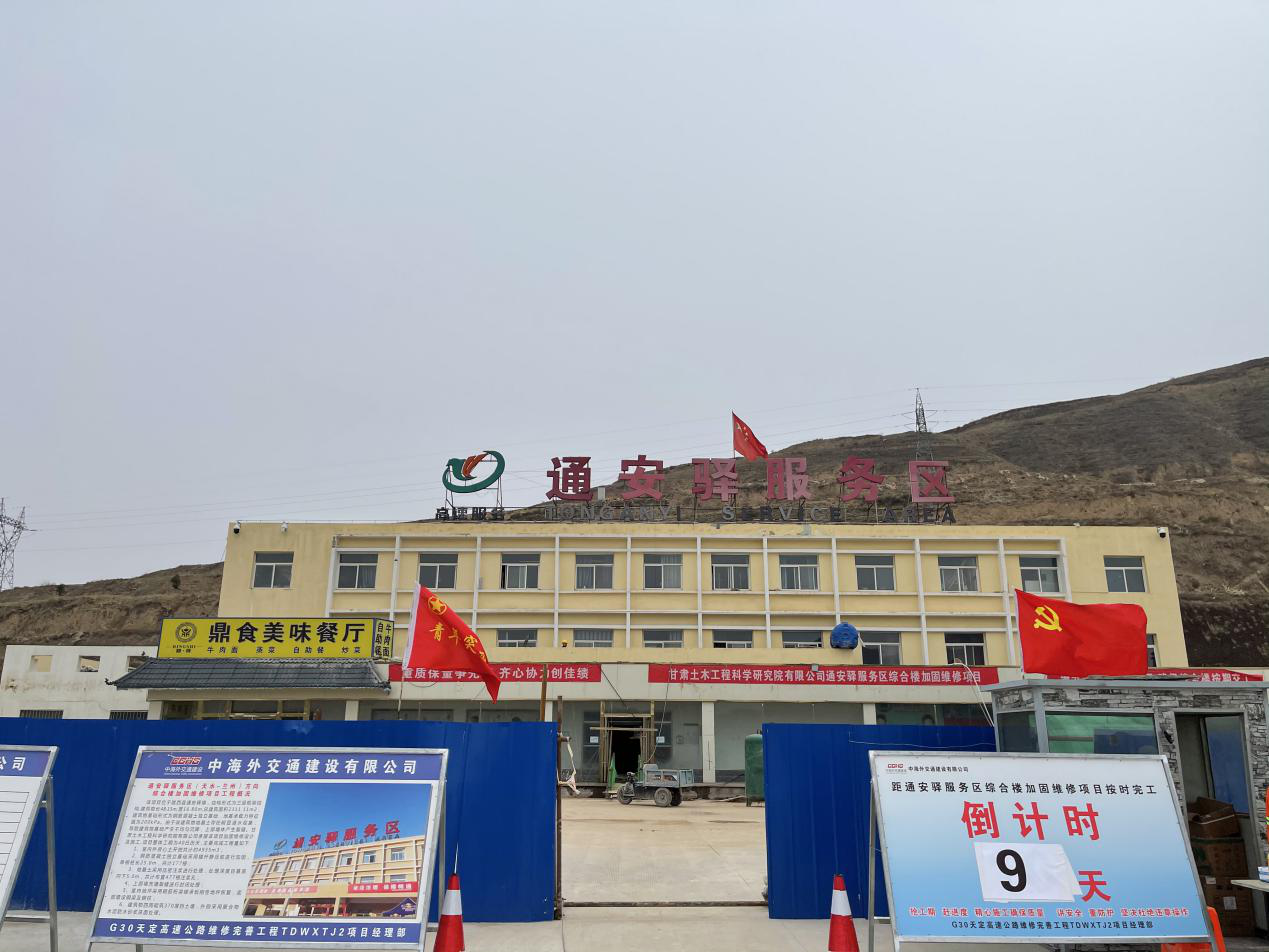 通安驛服務(wù)區(qū)(天水-蘭州)方向綜合樓加固維修項目是省交通廳重要民生項目,自開工以來受到社會廣泛關(guān)注。項目建筑物結(jié)構(gòu)為三層框架結(jié)構(gòu),總建筑面積2311.11㎡,基礎(chǔ)采用鋼筋混凝土階式獨(dú)立基礎(chǔ),按照要求務(wù)必在四十天內(nèi)按期交付,時間緊、任務(wù)重、壓力大。項目負(fù)責(zé)人堅持黨建引領(lǐng)促生產(chǎn)、創(chuàng)先爭優(yōu)做表率,親自部署、靠前指揮,成立“青年突擊隊”,帶領(lǐng)施工人員克服困難、爭分奪秒,研判技術(shù)難題,綜合采用植筋、水鉆成孔、素混凝土引孔及注漿孔成孔、靜壓樁施工、鋼管柱及地基注漿、剛性板施工等施工工藝,積極搶抓工期、晝夜奮戰(zhàn)、全力沖刺,重壓保量爭先鋒,齊心協(xié)力創(chuàng)佳績。