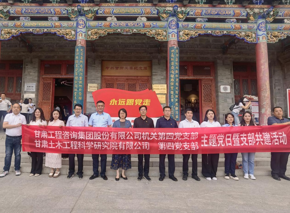 為慶祝中國(guó)共產(chǎn)黨成立103周年,7月1日,集團(tuán)公司機(jī)關(guān)第四黨支部與土木工程院第四黨支部赴中共甘肅工委紀(jì)念館開(kāi)展“七一”主題黨日暨支部共建活動(dòng)。集團(tuán)公司黨委副書記、董事王春燕,黨委宣傳部(黨群工作部)部長(zhǎng)、機(jī)關(guān)黨委副書記丁永升,黨委宣傳部(黨群工作部)副部長(zhǎng)、機(jī)關(guān)黨委書記金生磊,集團(tuán)公司機(jī)關(guān)第四黨支部黨員,土木工程院黨委書記、監(jiān)事會(huì)主席、工會(huì)主席張磊,黨委委員、紀(jì)委書記張健,土木工程院第四黨支部部分黨員及發(fā)展對(duì)象參加了本次活動(dòng)。