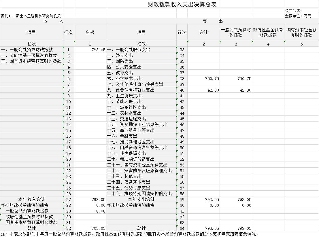四、財(cái)政撥款收入支出決算總表