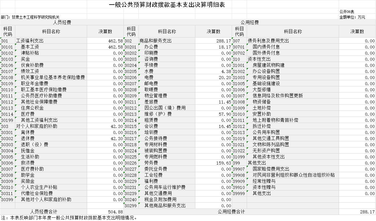 2023年度財(cái)政撥款收、支總計(jì)均為793.05萬元。與上年相比,各增加0.94萬元,增長0.12%。主要原因是社會(huì)保障和就業(yè)收、支較上年增加0.94萬元。其中:科研機(jī)構(gòu)人員經(jīng)費(fèi)504.88萬元,占比63.66%;公用經(jīng)費(fèi)288.17萬元,占比36.34%。