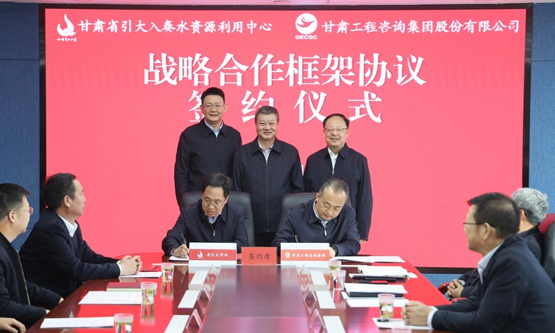2月7日,甘肅工程咨詢集團、省水電設(shè)計院與省引大入秦水資源利用中心分別簽署戰(zhàn)略合作框架協(xié)議。省引大中心黨委書記、主任張正主持簽約儀式并講話,甘肅工程咨詢集團黨委書記、董事長張佩峰致辭,總經(jīng)理陳一夫出席。