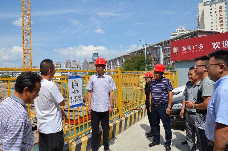 在東湖廣場(chǎng)、盛達(dá)金城廣場(chǎng)兩項(xiàng)目現(xiàn)場(chǎng),章海峰同志一行詳細(xì)詢問了工程建設(shè)情況和夏季高溫作業(yè)職工的勞動(dòng)保護(hù)措施落實(shí)情況,充分的肯定了各施工現(xiàn)場(chǎng)對(duì)防暑降溫工作采取的一系列保障措施,并要求各施工現(xiàn)場(chǎng)科學(xué)、合理安排好作息時(shí)間,進(jìn)一步落實(shí)安全生產(chǎn)責(zé)任制,消除各類安全隱患,保證職工身心健康和施工安全。他向一線工作人員們送上了茶葉、飲料等防暑用品,并對(duì)我院廣大一線職工戰(zhàn)高溫、斗酷暑,一如既往地堅(jiān)守在工作崗位上的辛勤工作表示感謝,親切叮囑他們注意安全,保重身體。